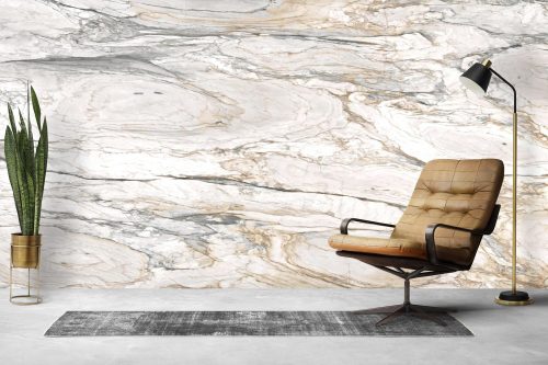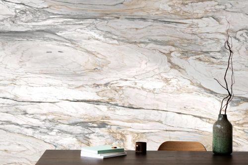 The veining in Calacatta Aurora is what truly defines its character. Soft to medium grey veins sweep across the surface in fluid, organic patterns, adding movement and depth. Woven between these cooler tones are warm brown and taupe accents, creating a rich contrast that brings balance and warmth to the overall look. This combination of cool and warm hues makes Calacatta Aurora uniquely adaptable to a wide range of design styles.