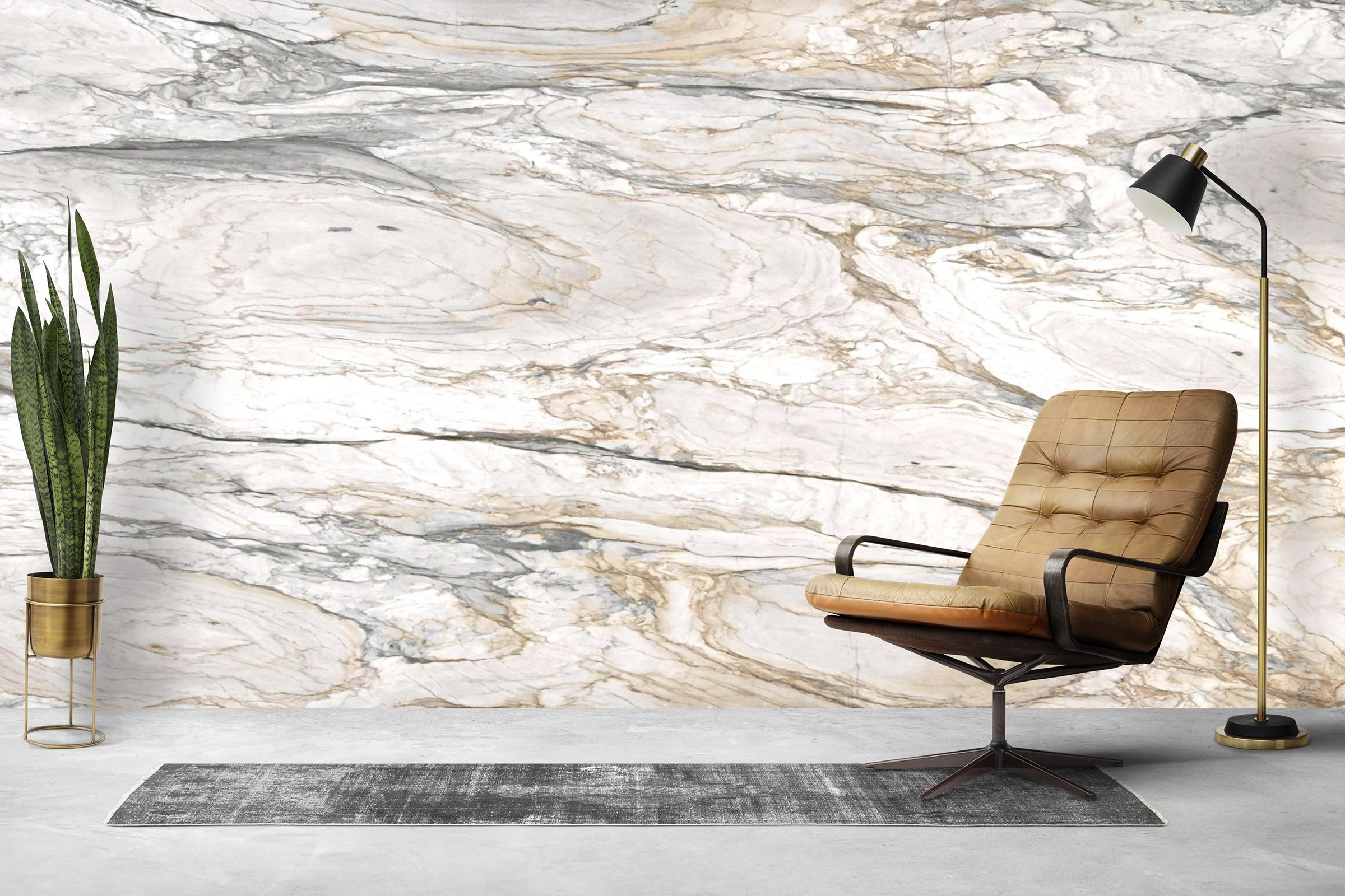 The interplay of white, grey, and brown allows this marble to pair seamlessly with many materials and finishes. It complements everything from light and dark woods to black, chrome, brass, and brushed nickel fixtures. Whether used in minimalist spaces or layered, traditional interiors, Calacatta Aurora enhances the surrounding design while serving as a striking focal point.