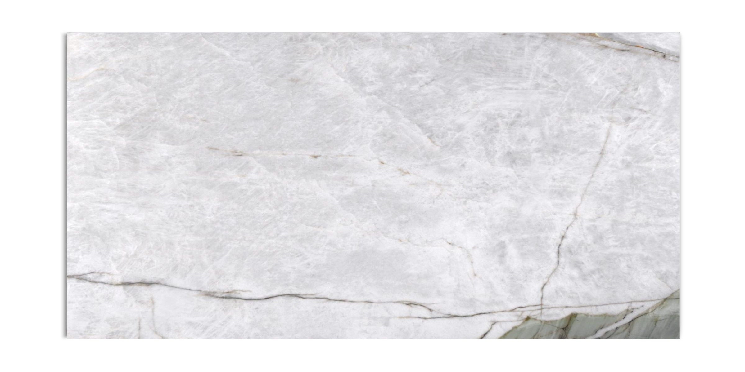 Soft to medium grey veins sweep across the slab and add movement and dimension. These lines create gentle contrast while keeping the overall look smooth and cohesive. Every vein enhances the quartzite’s natural clarity and gives the stone an illuminated, almost glowing appearance.