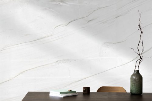 Mont Blanc Light delivers a clean, airy look with its bright white base and gentle, refined veining. The stone immediately brightens any room and creates a calm, modern atmosphere. Its soft, luminous surface sets the perfect foundation for elegant and versatile interior design.