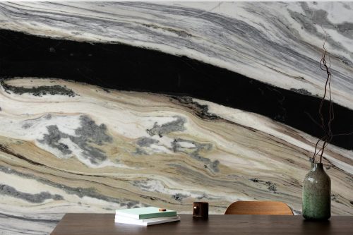 The veining in Panda Brown is expressive and organic, flowing across the surface in sweeping patterns that resemble hand-painted strokes. Deep black lines offer strong definition, soft grey accents introduce subtle dimension, and rich brown veins add warmth and a natural, earthy balance. Together, these tones create a harmonious blend that gives the stone its signature character.